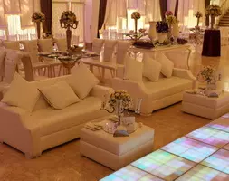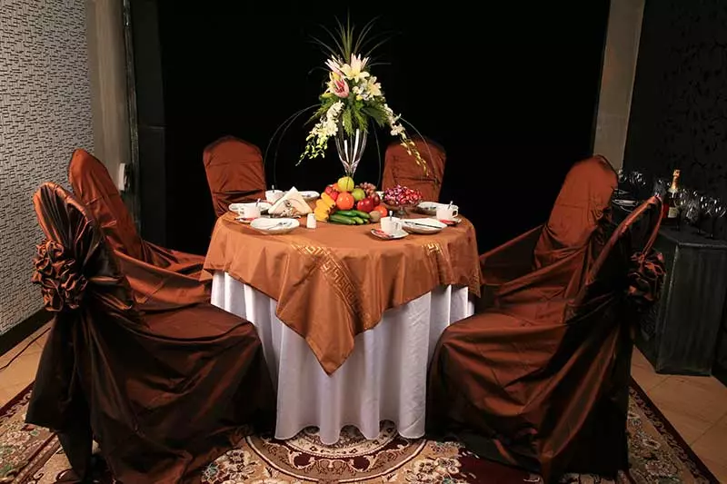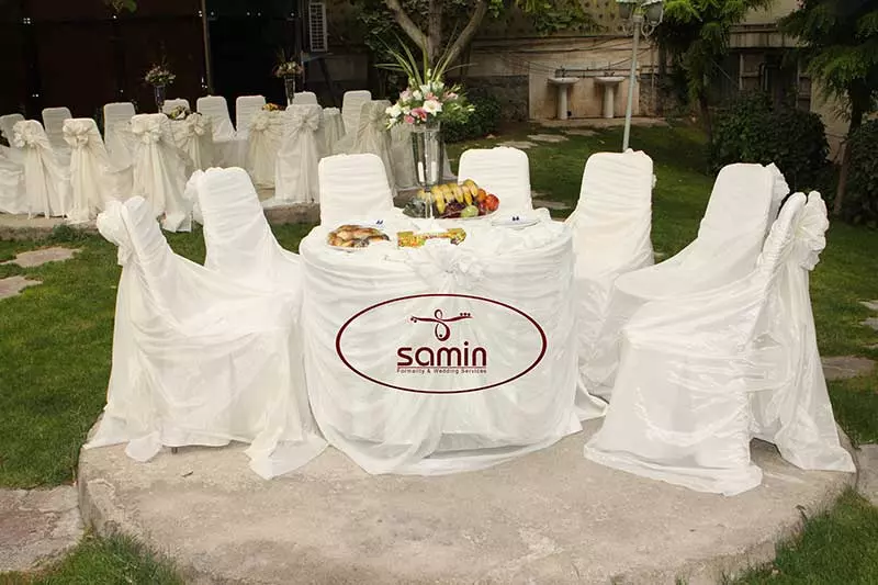 چیدمان میز و صندلی تشریفات ثمین با وسایل تزیینی زیبا به گونه ای است که میهمانان در هر قسمتی از سالن که باشند احساس تنهایی ندارند.